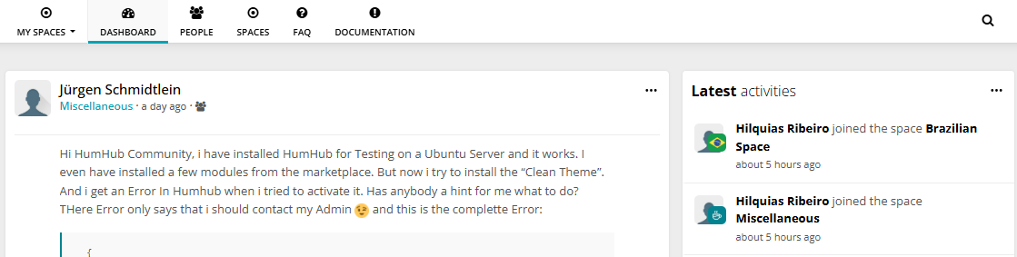 Feature: Dashboard, other wise known as a “Live Feed” is the aggregation of all the posts from various spaces (groups) you belong to – much like your Facebook Feed.